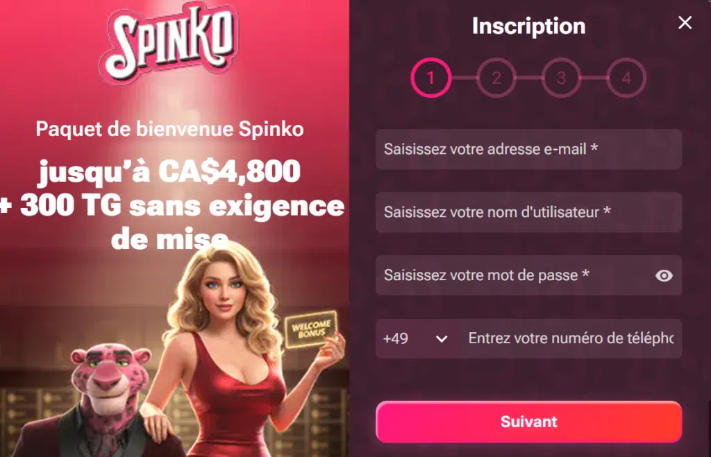 Ces avantages rendent Spinko particulièrement attrayant pour les joueurs qui recherchent un fort bonus de départ et une expérience fluide dès l’inscription.